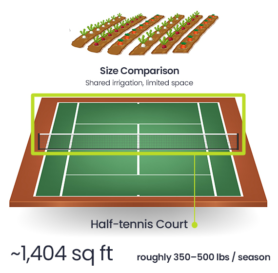 Estimated Yield: ~350β500 lbs of fresh produce per season